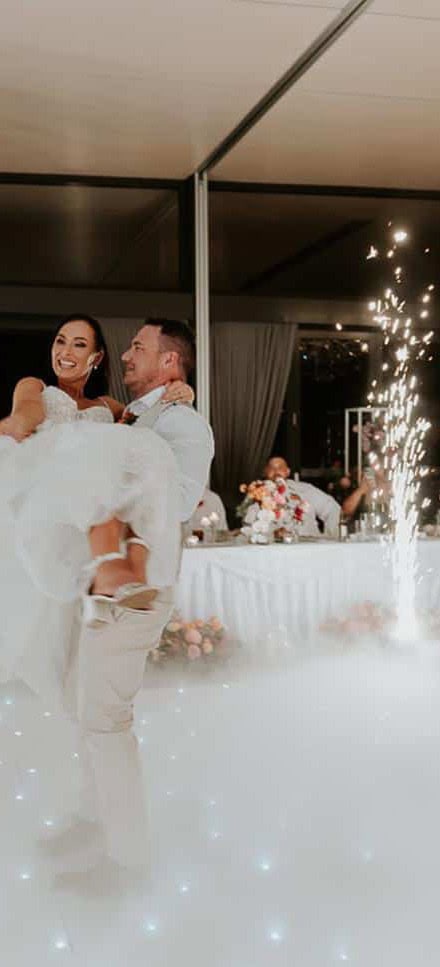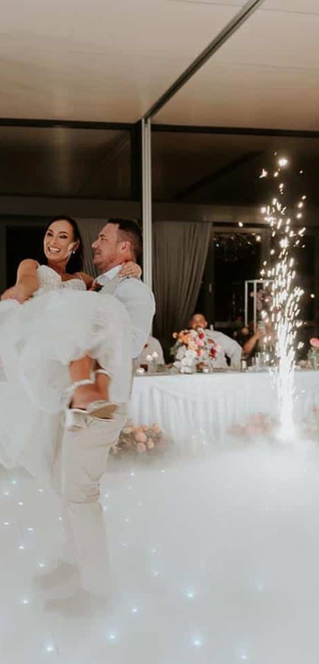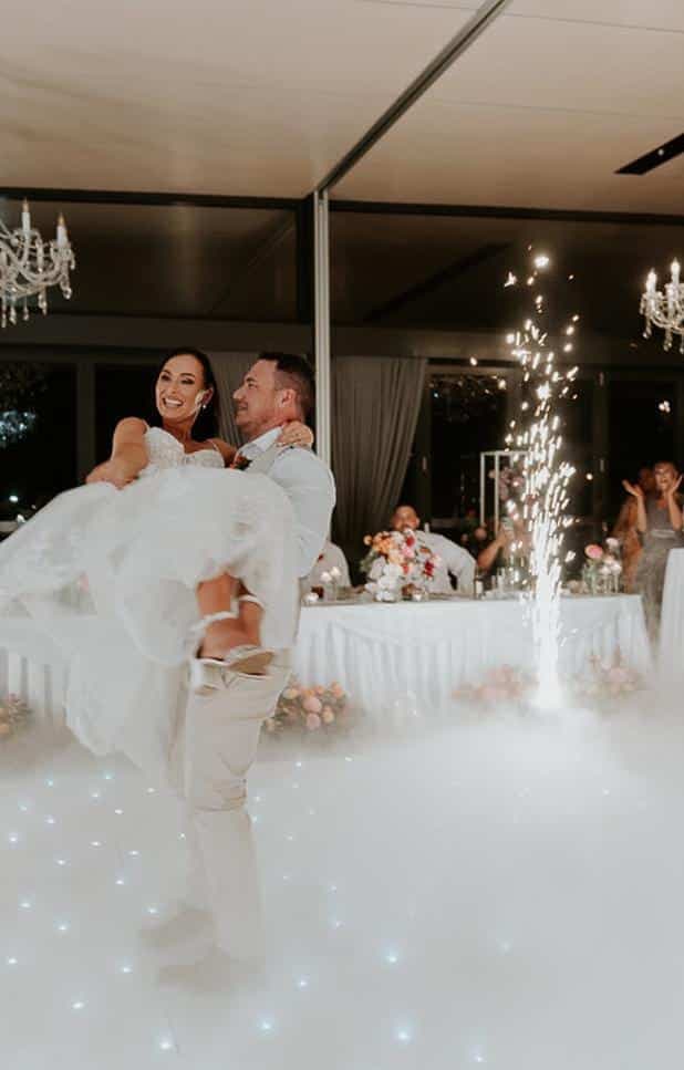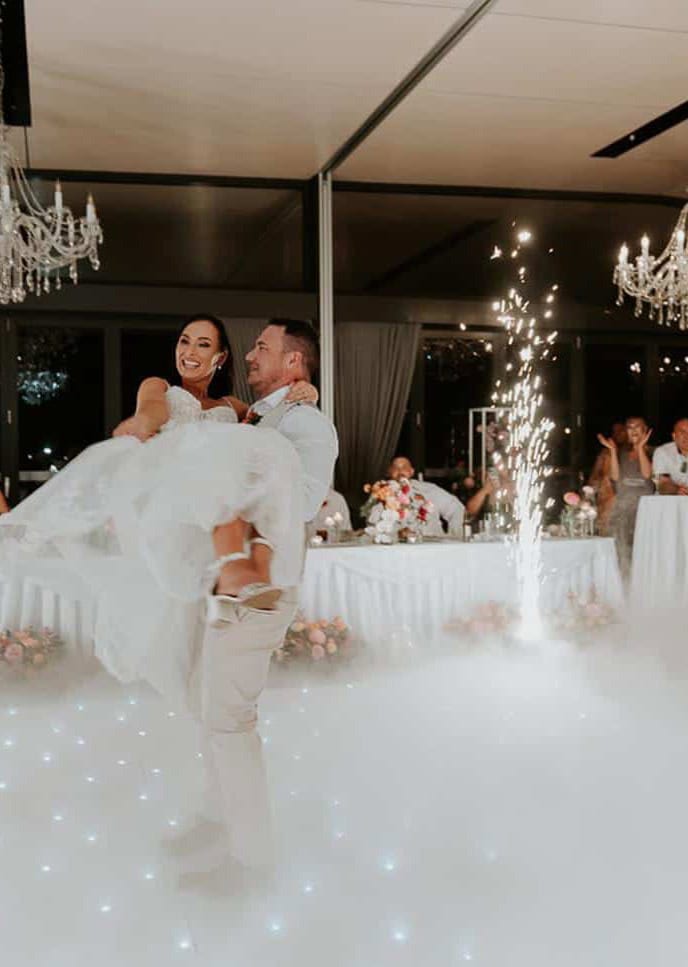 Already booked your G&M DJ? See how a Starlight Dance Floor, Dancing on a Cloud, CO2 Gun and Sparkular indoor fireworks can take your Brisbane wedding reception to the next level.